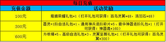 活动说明:以上活动奖励,玩家每日只返最高一档!